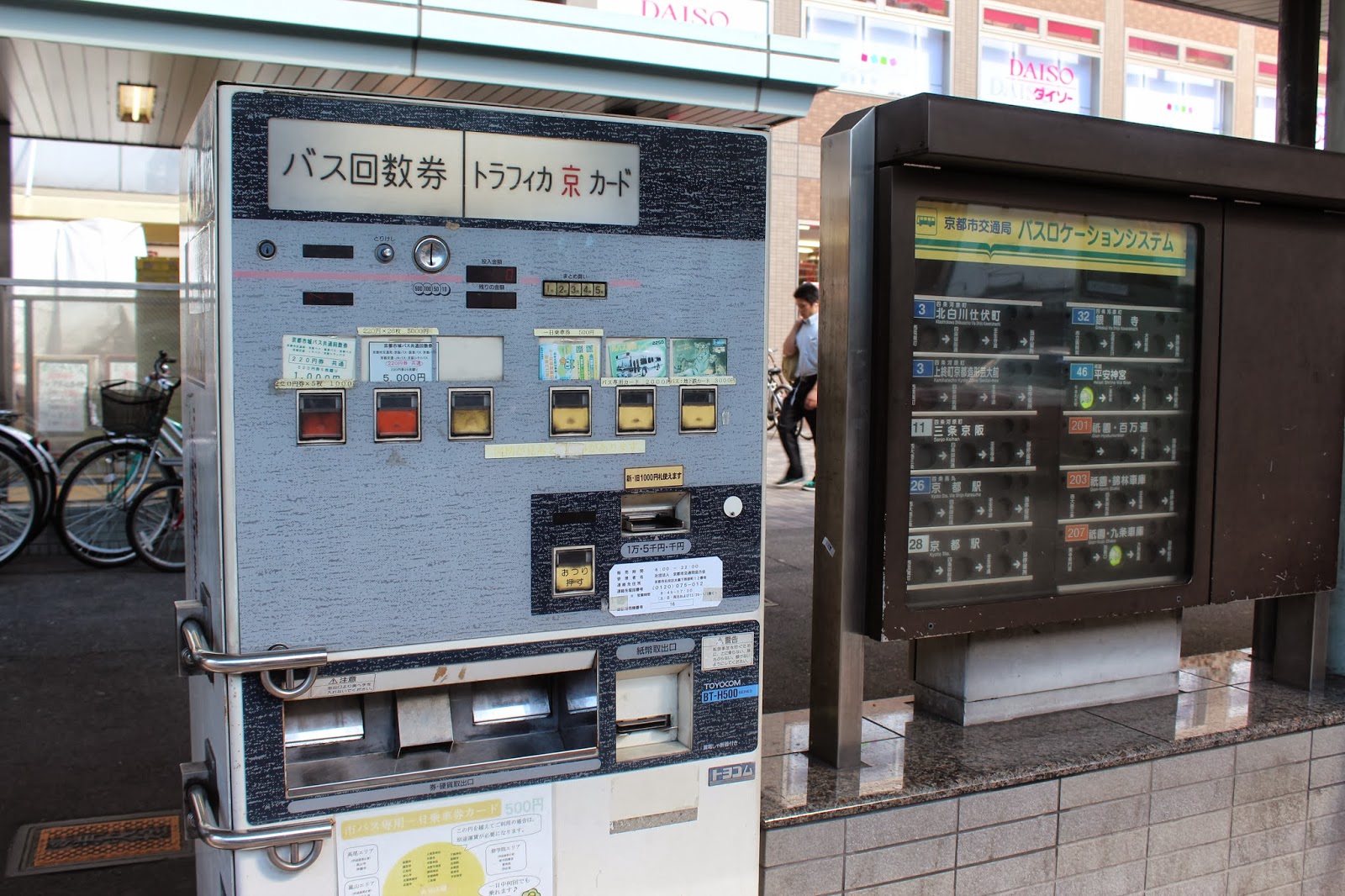 四條大宮巴士站都有1日劵自動販賣機